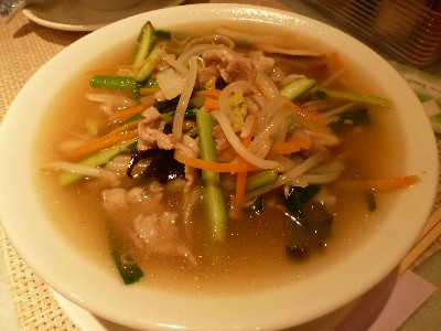 野菜たっぷりタンメン(豚肉、アスパラガス、もやし、人参、にら、玉ねぎ、きくらげ)