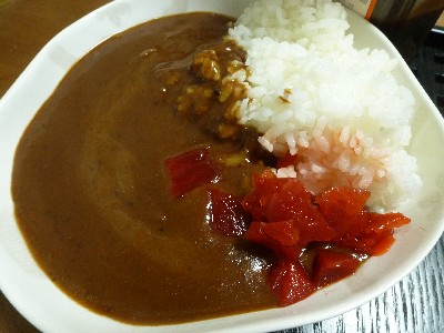 オニオンソテー、いちごジャム、小麦粉、牛肉等(牛肉、鳥かわ)、牛肉だし、トマトペースト、マンゴーピューレ、濃縮リンゴ果汁、カレー粉...etc