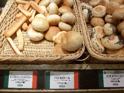 バジルロール、セザメベーコン、ミニクロワッサン、チーズロール、チャバタチーズ(トマト)