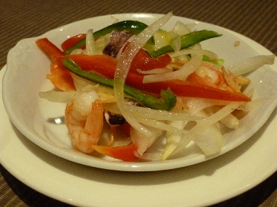 海老、イカ、アサリ入り。玉ねぎが少し辛いかなー。