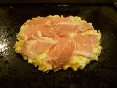 生地を作ってから、上に豚肉を隙間なく広げてみた