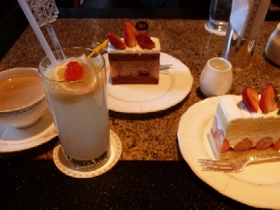レモンスカッシュを撮ってたら、3人で注文したものを寄せてくれたw