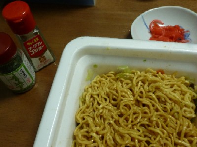 途中で青海苔掛けたり、コショー振ったり、紅生姜をつまんでみたり。