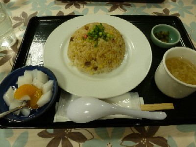 チャーハン:503kcal(チャーハン、かきたまスープ、お新香、杏仁豆腐)