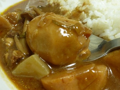 我が家では根菜のみそ汁にカレールーを加えて食べるので、里芋やこんにゃくにそんなに違和感なし。