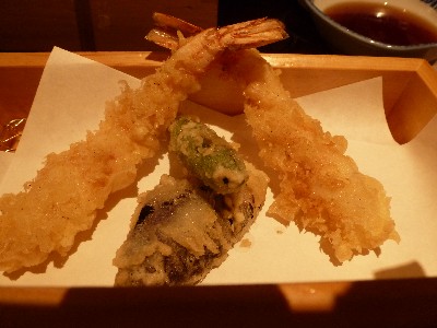 天ぷら。海老2尾・なす・ししとう。