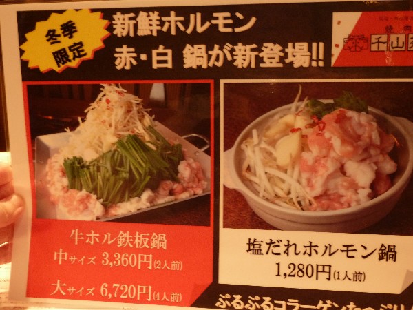 外で見た写真をメニューを確認すると冬期限定のホルモン鍋だった。