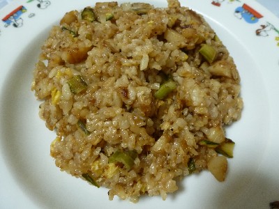 昨日自分で作ったチャーハンがひと味足りなかったので、母さんが味を修整してくれた。焦がし醤油風。