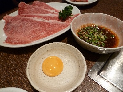 ささっと炙って卵黄を溶いた特製タレでいただきます。
