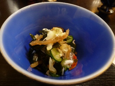 かに、くらげ、わかめ、きゅうりが和えてあった。