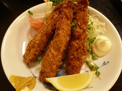 揚げたて!! 熱かったから箸で割ったらもわ~っと湯気が上がった。