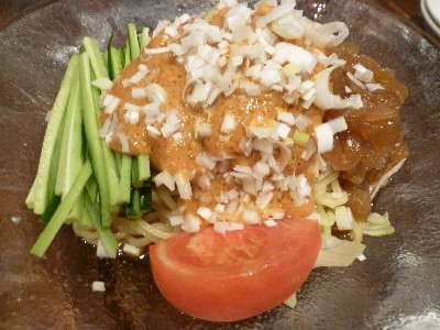 たっぷりピリ辛のゴマダレがかかってます。ピーナッツっぽい風味は気のせいかな?