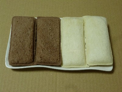 (白いパン〔130kcal〕、ココア風味のパン〔129kcal〕)