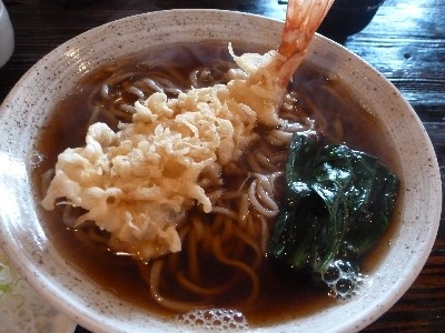 海老、プリっとしてる。そばも食べるのが遅くても伸びない程度の量。
