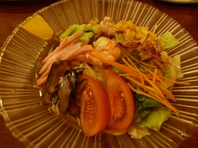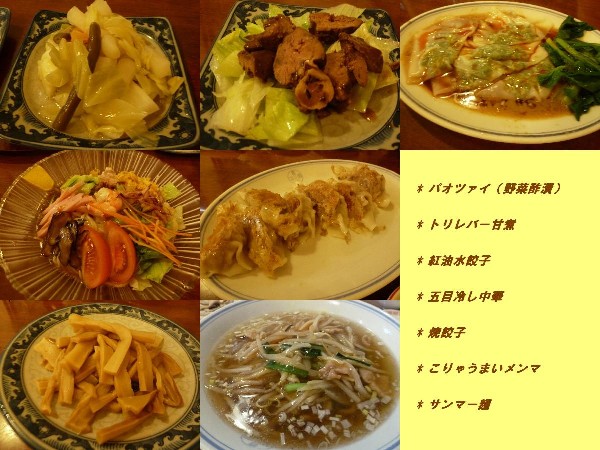 冷し中華だけのつもりが、結局なんだかんだ300円小皿料理3品と餃子2種類を頼んだ。