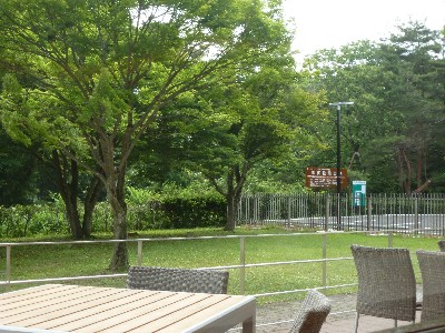 窓際の席。外は自然がいっぱい。