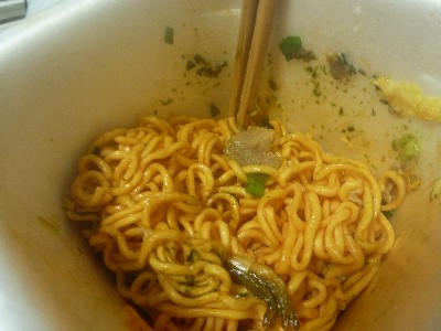 麺とソースの味が強すぎてフリーズドライのキムチはそんなに味が主張せず・・・