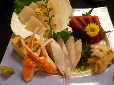 刺身盛合わせ(まぐろ、平貝、玉子、かに爪、ぶり、さざえ)