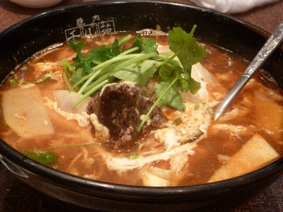 和牛アバラ肉、野菜を辛く煮込んだスープをかけたごはん。味見させてもらった。