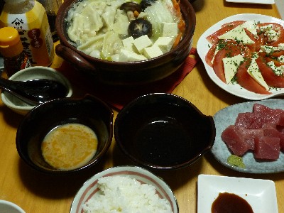 (鶏手羽元3本、木綿豆腐、白菜、長ねぎ、えのき、椎茸、わかめ糸こんにゃく、ポン酢、柚子胡椒)