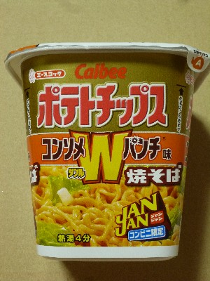 カルビーの「カルビーポテトチップス コンソメ W パンチ」とコラボレーションしたカップ焼そば。