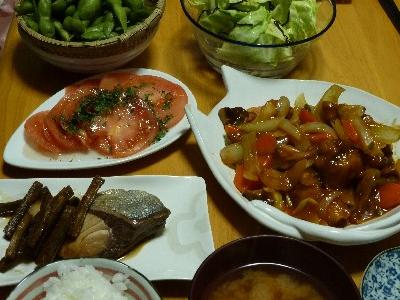 鶏と野菜の甘酢あん炒め:260kcal (鶏からあげ、玉ねぎ、人参、ピーマン、椎茸、甘酢)
