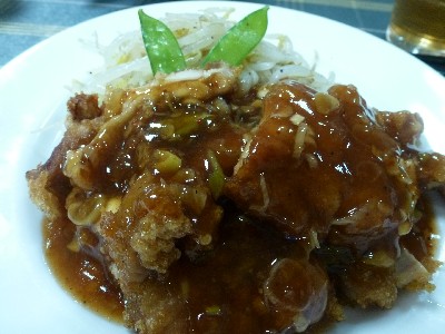 油淋鶏定食:776kcal(ごはん、かき玉スープ、油淋鶏・もやし、香物)