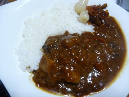 カレーライス(ごはん、カレー屋カレー〔辛口〕、福神漬け、らっきょう3粒