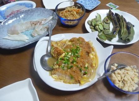(ロースカツ2/3枚、たまご、玉ねぎ、小ねぎ、調味料...)