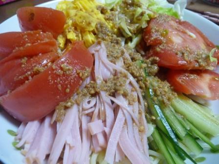(蒸し中華麺、自家製ごまだれ〔ポン酢、砂糖、練りごま、すりごま、シークァーサードレッシング〕