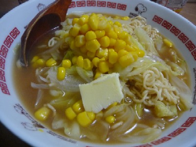 (サッポロ一番みそ、キャベツ、玉ねぎ、コーン、コチュジャン、バター)