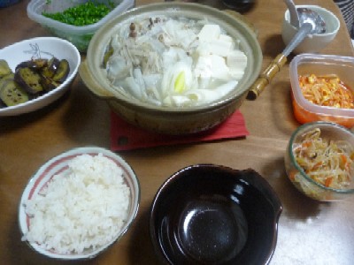 (鶏肉、鶏だし、豆腐、春雨、白菜、長ねぎ、大根、ごぼう、えのき、ブラウンえのき、ポン酢、小ねぎ)
