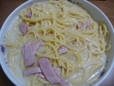 (スパゲティ120g、チーズと卵黄で仕上げたクリームソース〔294kcal(113kcal/100g)〕、