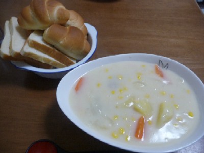 シチュー 1.5杯:615kcal (豚肉、にんじん、じゃがいも、玉ねぎ、コーン、シチュールー、調味料)